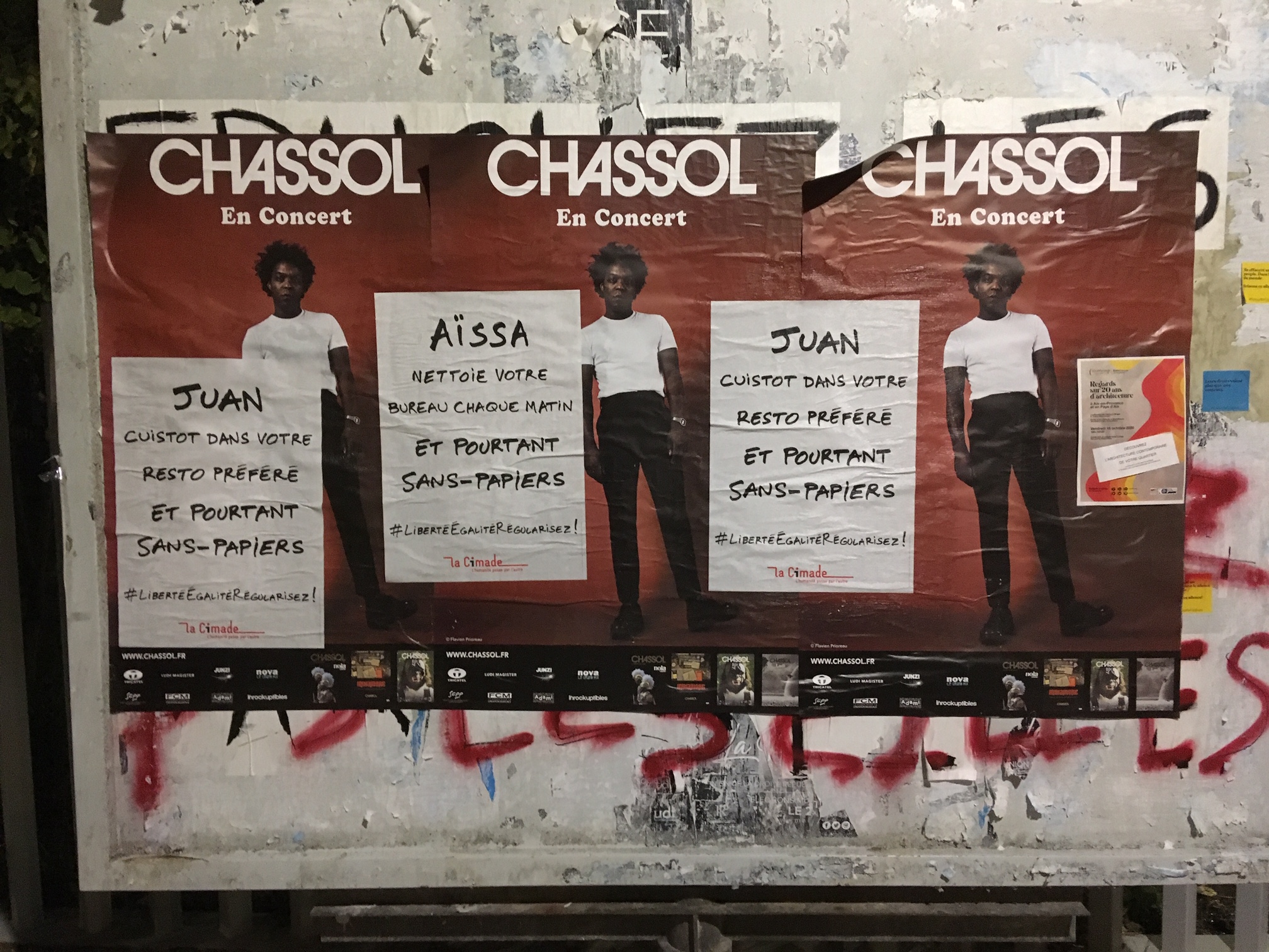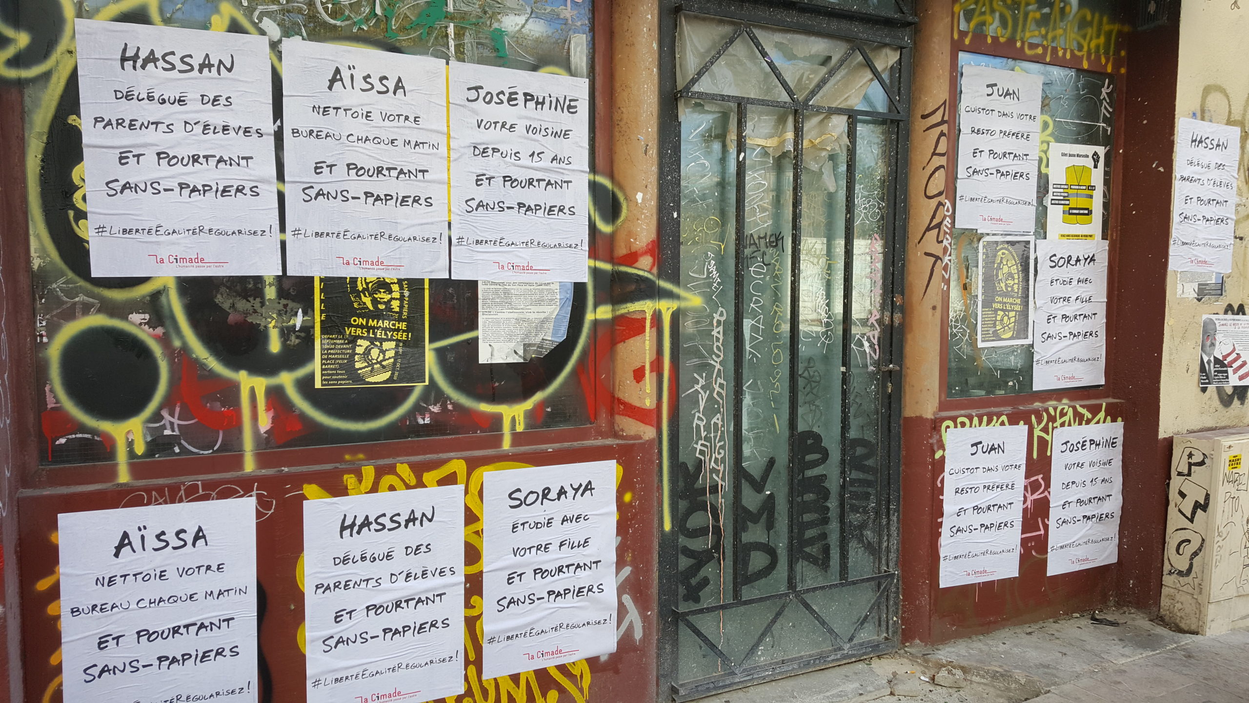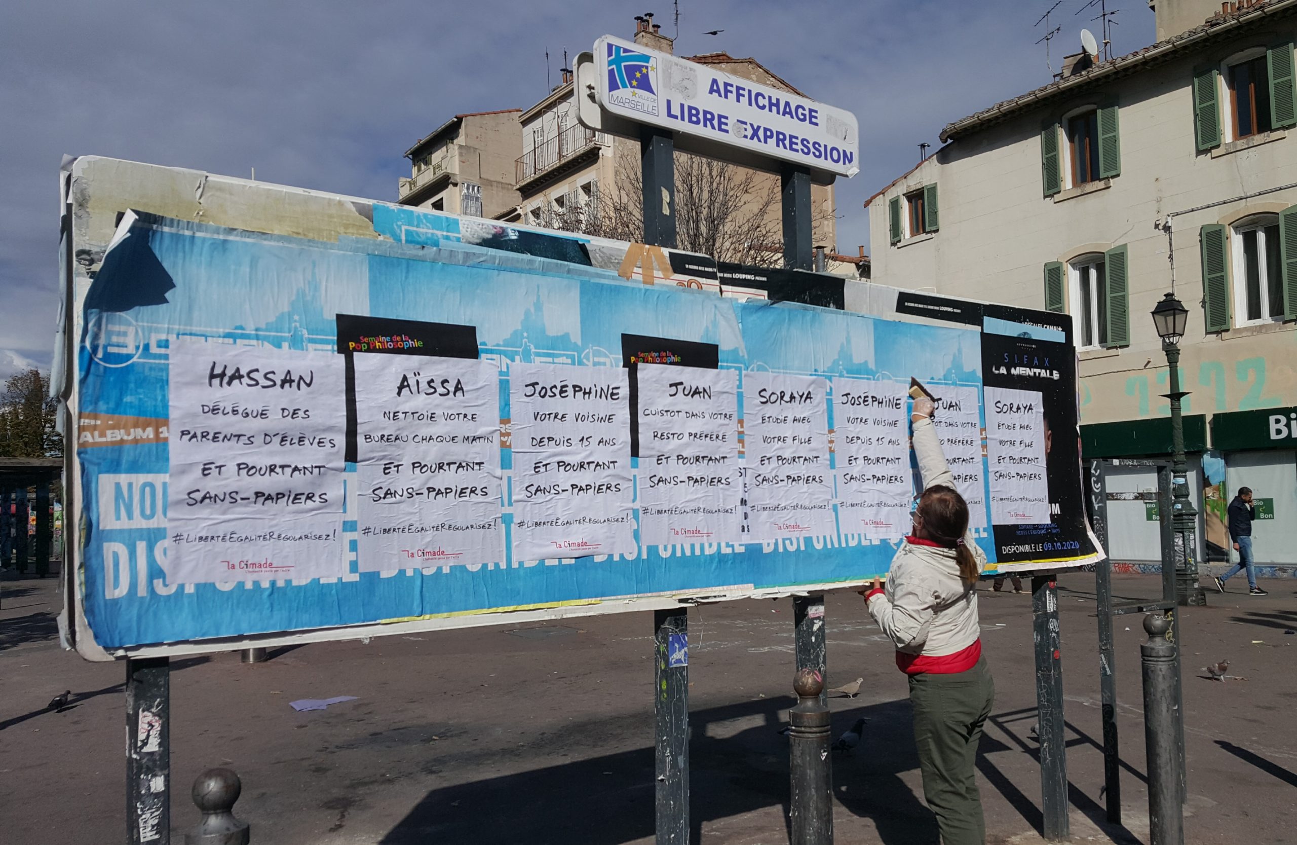 La Cimade a couvert les rues des villes d’affiches pour accompagner la Marche des sans-papiers. Après avoir traversé la France à pied, sous la pluie, le collectif des sans-papiers a convergé à Paris pour réclamer l’égalité. A Gap, à Nice, à Aix-en-Provence, à Toulon et à Marseille, partout des portraits de personnes étrangères indispensables réclament : « Liberté, Egalité, Régularisez ! »