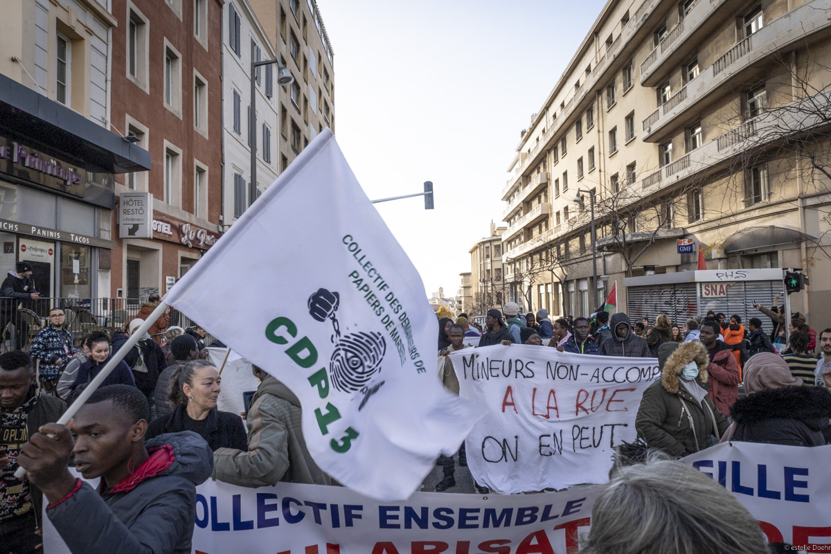 Une manifestation solide et rythmée, organisée par les collectifs de demandeurs de papiers s’est fait entendre à Marseille pour la Journée Internationale des Migrants.